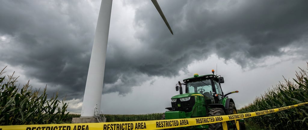 Outra "pegadinha" comum é a restrição de obstáculos. O contrato diz que você pode continuar plantando ou criando gado. Mas nas cláusulas de Interferência Eólica, diz que você não pode erguer estruturas que "perturbem o fluxo de vento" num raio de X metros das torres.