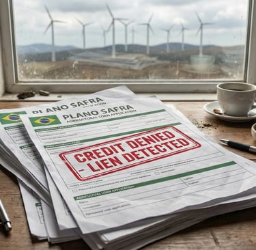 Juridicamente, isso cria um "Gravame" (um ônus) pesado sobre a terra. Quando você vai ao banco pedir o Custeio Agrícola ou Financiamento de Investimento (para comprar um trator ou construir um silo), o banco pede a matrícula atualizada.