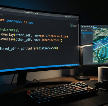 Se o seu computador trava quando você abre um arquivo .SHP ou tenta cruzar dados de 10 fazendas rural ao mesmo tempo, você não tem um problema de hardware. Você tem um problema de ferramenta. Bem-vindo à era da auditoria via código.
